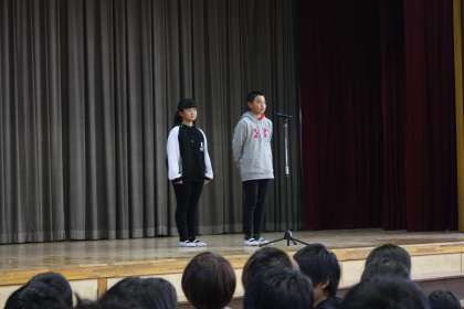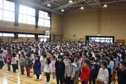 始業式では校長先生のお話、代表児童の3学期にがんばりたいことの発表がありました。
