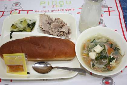 糸寒天のスープは、初めて給食に登場したメニューです。