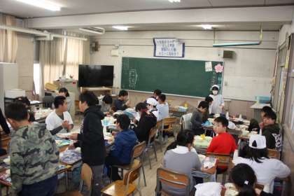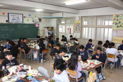 卒業お祝い献立を6年生が楽しく食べています。