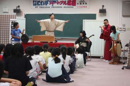 代表児童による、落語体験やお囃子体験コーナーも盛り上がりました。