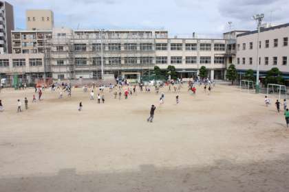 ふだんから決めてある緊急事態発生の合図で、運動場で遊んでいた児童も一斉に近くの教室に避難しました。