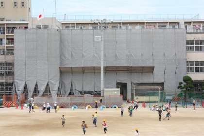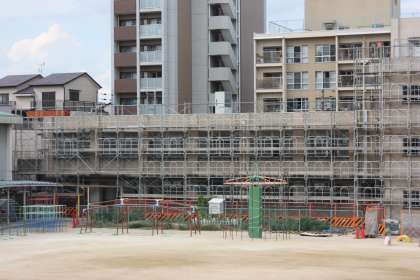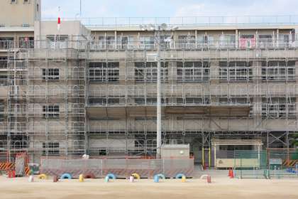 足場が組み上がりシートも張られ、本格的に工事が始まります。