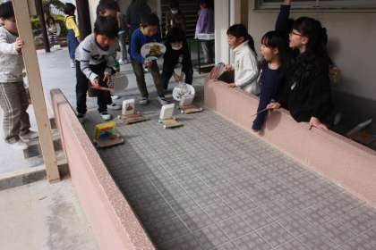 2年生が、生活の学習で動くおもちゃを作り、「おもちゃランド」を開きました。