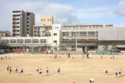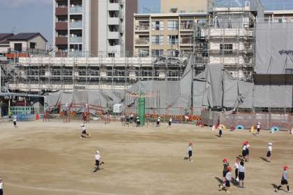 北校舎で進められている外壁塗装工事がまもなく終了します。