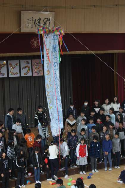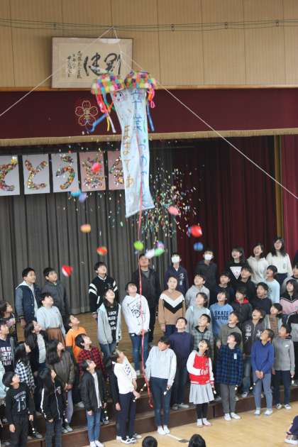 一年間いっしょに活動してきたたてわり班の6年生の卒業をみんなでお祝いしました。