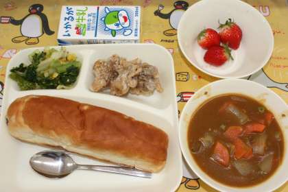 今日は、卒業お祝い献立です。6年生の卒業をお祝いして、いつもよりちょっぴり豪華な給食です。