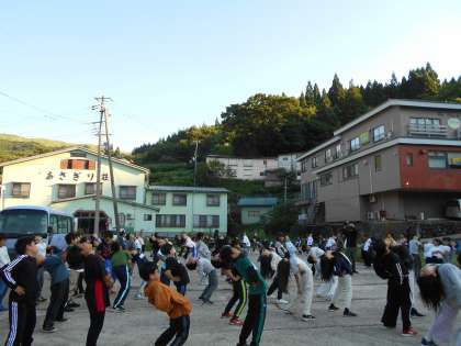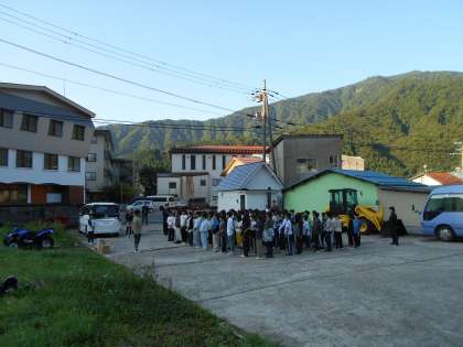 2日目始まりました。朝礼で、昨日の反省をふまえて今日がんばることを確認しました。またラジオ体操、記念撮影もしました。