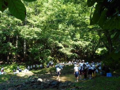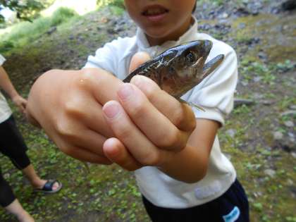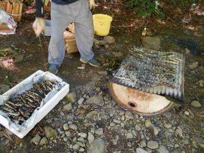 つかんだ魚(やまめ)を焼いてもらいました。お昼ごはんにいただきます。