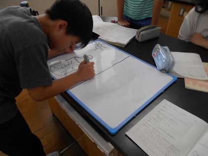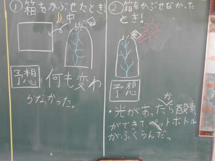 8月27日 理科の時間、1学期の復習をしました。光合成の時に二酸化炭素と光が必要か確かめる実験方法をみんなで考えました。