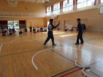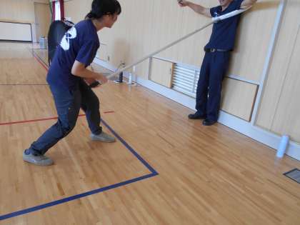 8月27日 放課後に不審者対応研修を行いました。セーフティー淀川の方に来ていただき、さすまたの使い方や身近にあるもので不審者を近づかせない訓練を行いました。