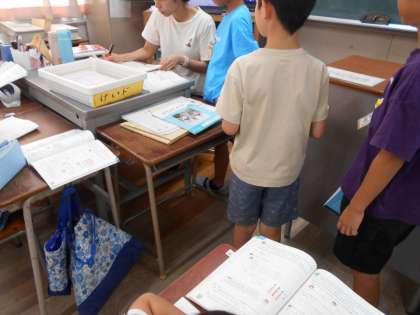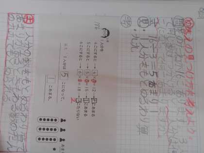 8月29日 算数であまりのあるわり算について学習しました。問題に取り組み先生にみてもらいました。