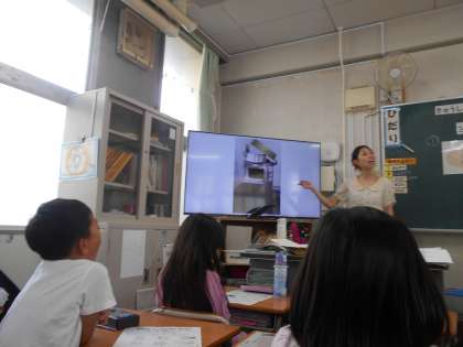 9月11日 教育委員会が行う栄養教育推進事業の一環として、食育の授業を行いました。給食について教えてもらいました。これから学年が上がるごとに栄養、食育に関するいろいろなことを教えてもらいます。