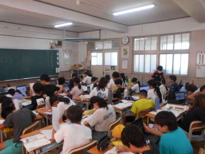 9月18日 国語で「心の動きを短歌で表そう」という学習をしました。短歌は五七五七七の31音で状況場面を表すことを確認してから、夏休みの思い出を短歌で表しました。