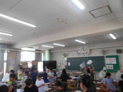 9月19日 理科で空気の性質について学習しました。今日は、ビニール袋に空気を閉じ込めて手触りを確かめました。