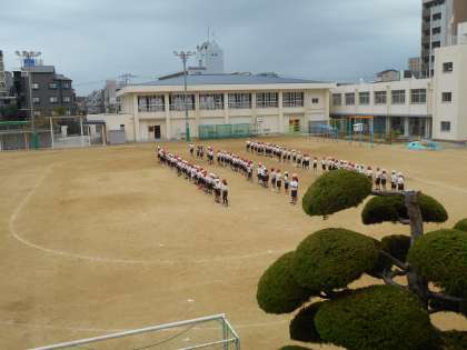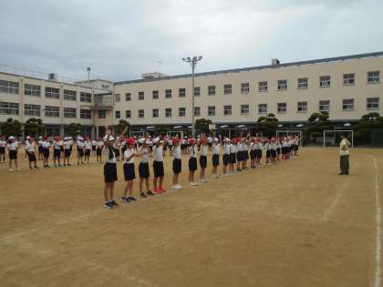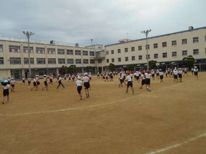 10月16日 体育で運動会の団体演技の練習をしました。かなり仕上がっています。今日は退場のタイミングを合わせました。