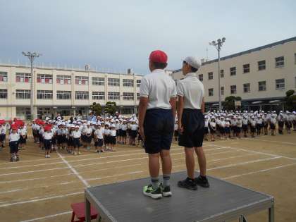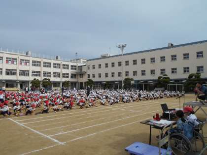 10月21日 1,2時間目に運動会全体練習がありました。開会式、ラジオ体操、閉会式の練習をしました。