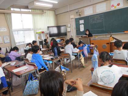 11月4日 大阪メトロのバス中津営業所に社会見学に行きました。バス会社の方にどのような仕事があるのか教えてもらいました。学校に戻り社会見学の振り返りをして、記録のプリントをつくりました。