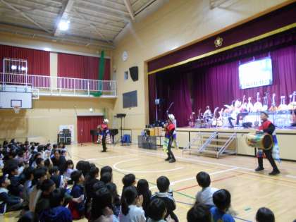 11月6日 体育館に「音楽工房」のみなさんに来ていただき、世界のいろいろな楽器を見せてもらいました。また体験もさせてもらいました。いろいろな形の弦楽器や打楽器がありました。