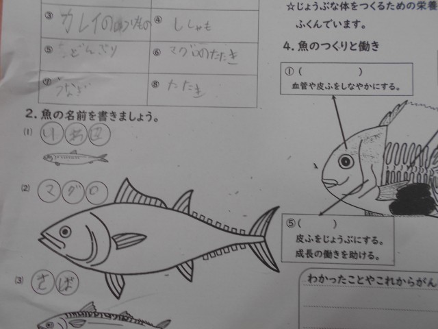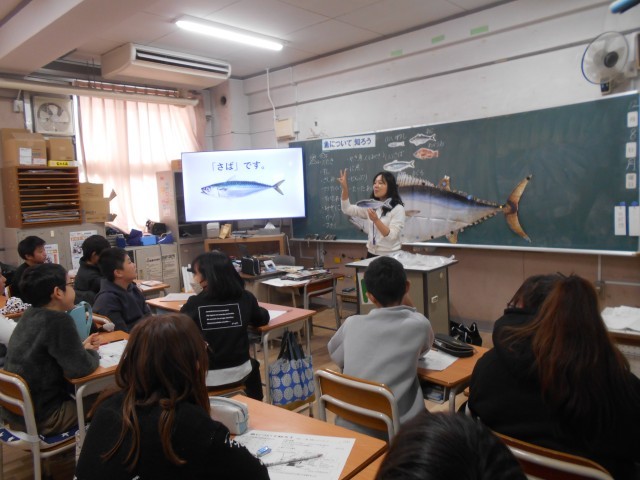 12月8日 淀川区の栄養推進事業の取組として、外部講師に来ていただき、食育の授業をしていただきました。今回は魚の栄養についての学習でした。
