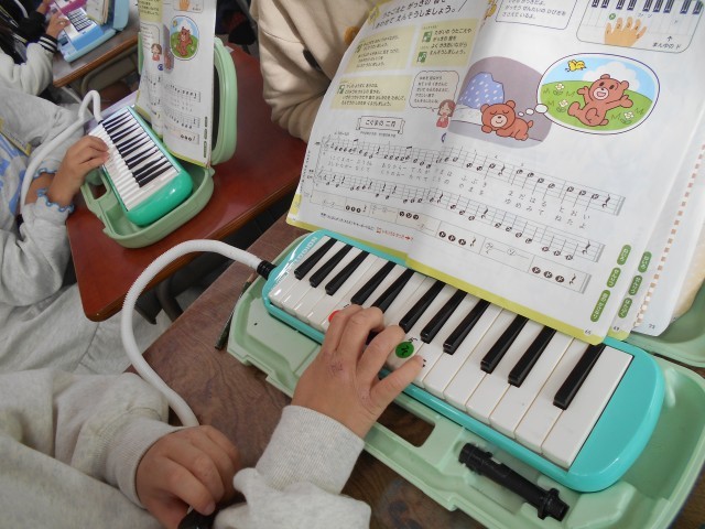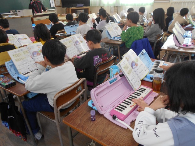 12月18日 音楽でリコーダー演奏をしました。2学期に習った曲を順番に演奏しました。指の動かし方を確認しました。