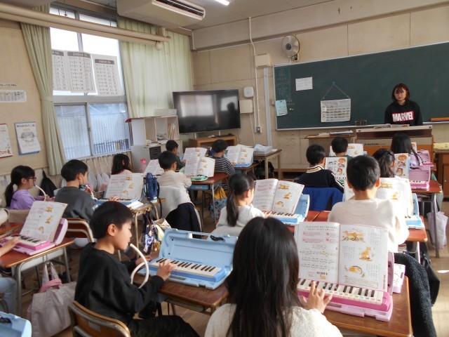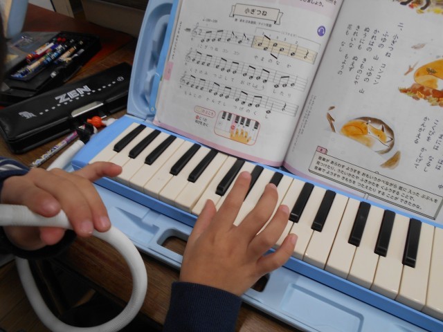 1月13日 音楽で「こぐまの2月」をリコーダーで演奏しました。鍵盤のゆびづかいが上達してきており、しっかりと練習してきた成果がでてきました。