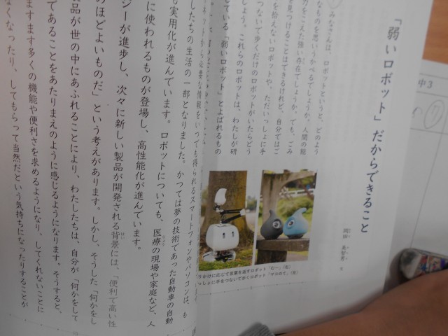 1月16日 国語で「弱いロボットだからできること」という説明文について学習しました。文章の構成をとらえるために、段落のまとまりを考えました。