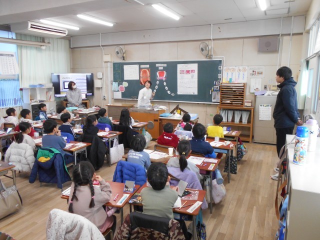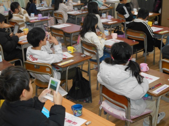 1月22日 学校歯科医さんと歯科衛生士さんに来校していただき、よりよい歯みがきの仕方を教えていただきました。前歯を1本染めだして歯垢の残り方を確かめて、どうすれば歯垢が落ちるのか教えてもらってから自分で歯みがきをしました。今回の学習で、健全な歯でいられるよう、しっかりと歯みがきできると思います。