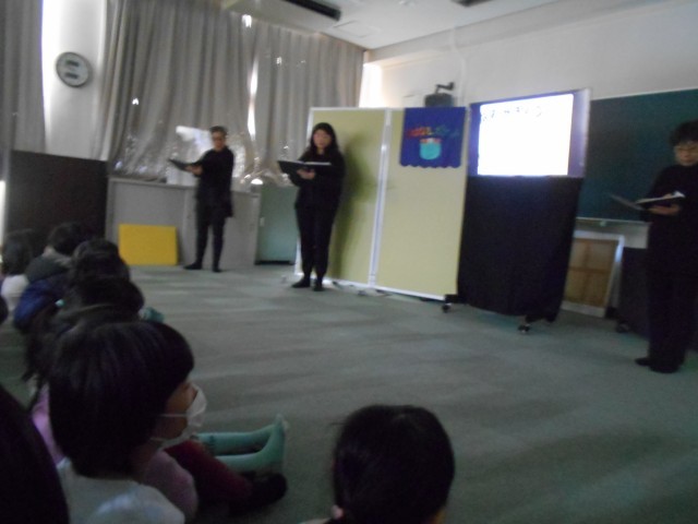 2月13日 読み聞かせボランティアのおはなしポケットのみなさまに123年に対して読み聞かせをしていただきました。45分間の中にじっくり聞くところ、笑うところ、体を動かすところとメリハリをつけた読み聞かせで、こどもたちは楽しそうに聞いていました。