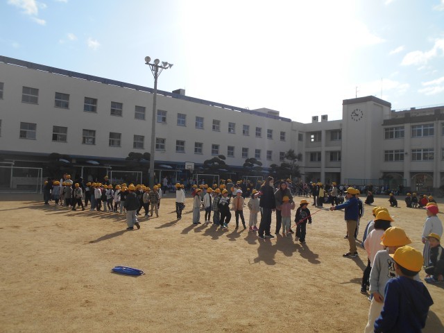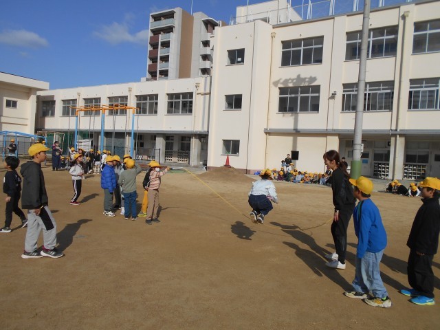 3月5日 3学期に全校で取り組んできた大なわの記録会を行いました。2分間で何回とべるかに挑戦しました。なわをまわす人ととぶ人がタイミングをあわせて協力しながら体を動かすことができました。体を動かすことが楽しいと思えるきっかけになればよいと思います。記録としては6年生が優勝でした。4年生もよくがんばりました。