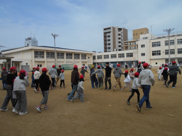 3月6日 6年生と1年生が交流しました。手をつないで、けいどろをしました。1年生はほんとうに楽しそうに活動していました。6年生は年長者としてやさしく接してくれました。