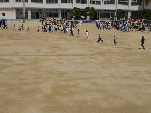 4月20日 今年度、1回目の避難訓練を行いました。運動場への避難、話の聞き方ともに大変まじめに行うことができていました。集団の場面で避難するときの約束である「おさない」「走らない」「しゃべらない」「もどらない」を確認しました。