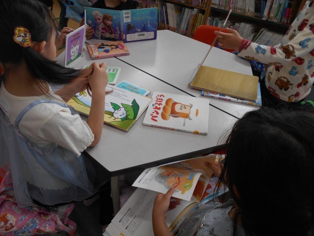 4月24日 図書の時間に、本読みをしました。教室で読めるように借りました。低学年のうちに本に親しむ習慣を身につけてほしいと思います。