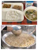 いかてんぷら 五目汁 のりのつくだ煮 ごはん 牛乳