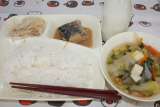 さごしのしょうゆだれかけ みそ汁 みずなの煮びたし 牛乳 ごはん