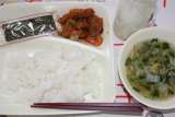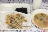 他人丼 みそ汁 黒豆の煮もの 米飯 牛乳