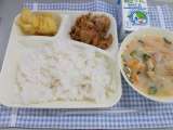 筑前煮 ひじき豆 だいこんのゆず風味 米飯 牛乳