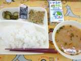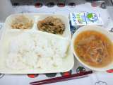 牛肉のきんぴらちらし みそ汁 キャベツの赤じそあえ ご飯 牛乳
