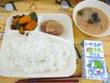 和風おろしハンバーグ みそ汁 かぼちゃのいとこ煮 ご飯 牛乳