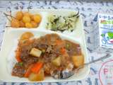 ハヤシライス(米粉) キャベツのひじきドレッシング さくらんぼ(缶) 牛乳