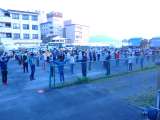 朝のつどい 宿舎前で、ラジオ体操をしています。 朝の冷え込みはありません。