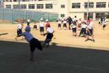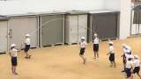 コートをつくって、赤・白に分かれて、ドッジボールをしました。