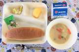 豆乳コーンクリームシチュー〔米粉〕、はくさいのピクルス、かき(平核無柿)、ソフ...