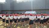 秋空のもと、1年生〜6年生が開会式・閉会式の流れを確認しました。