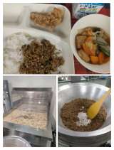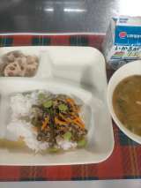 もずく豚ひき肉のジューシー さつまいものみそ汁 焼きれんこん ごはん 牛乳