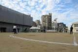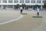 全体練習に向けて、朝から先生方が、長さを測りながらトラックを引き直しました。