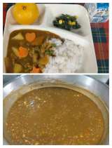 ポークカレーライス ほうれんそうのソテー みかん 牛乳