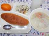 ほたて貝のクリームシチュー ブロッコリーとコーンのサラダ りんご 食パン ...