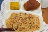 チキントマトスパゲッティ 蒸しとうもろこし 黒糖パン 1/2 牛乳