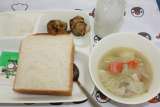たこボール スープ煮 だいこんのピクルス 食パン マーガリン 牛乳