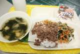 ビビンバ わかめスープ アーモンドフィッシュ ごはん 牛乳